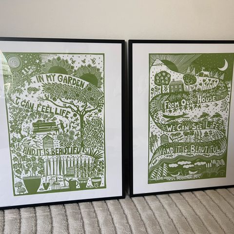 Billeder/ Motiver syet på lærred, Ikea, 2 styks flotte lærreder fra ikea med syet motiver af fugl og kronhjort