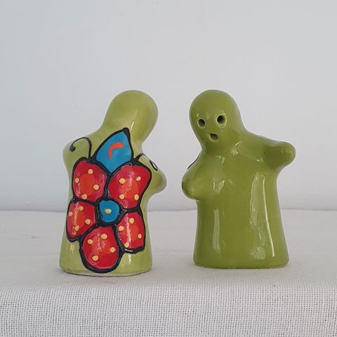 Porcelæn, Skulpturelle salt og peberbøsse i blåt porcelæn, Gl salt peber sæt Blå