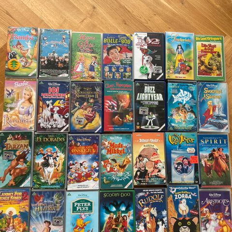 en kasse med gode videofilm / børnefilm / VHS film
