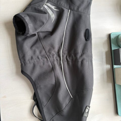 Der er lavet et sele hul så hunden kan have sele inden under.
