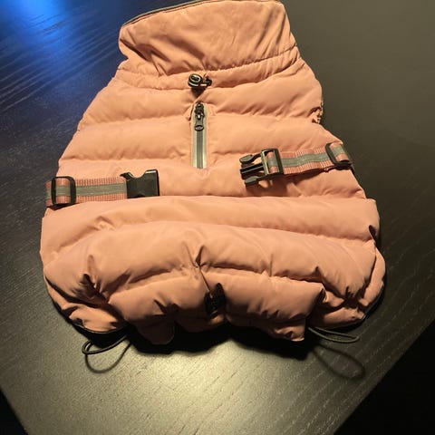 Der er lavet et sele hul så hunden kan have sele inden under.