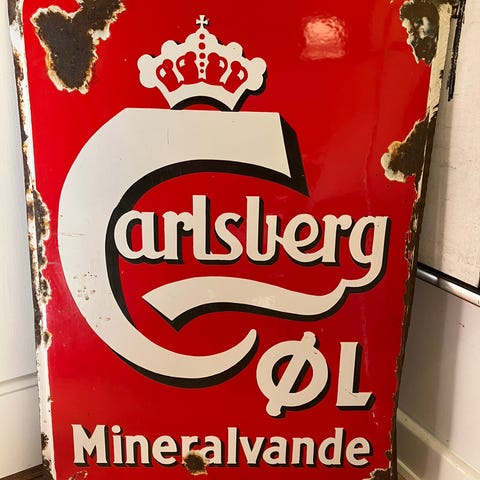 Skiltet er i meget flot stand på trods af dets alder. Har kun få brugsskræmmer.