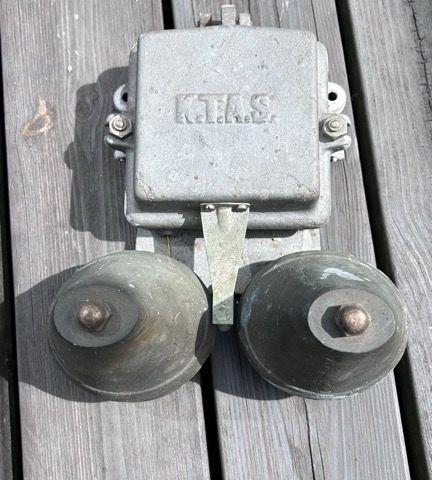 Antik lille tysk metal ringeklokke, sandsynligvis fra et tidligt elektrisk legetøjssæt. Sandsynligvis 1920-30erne.