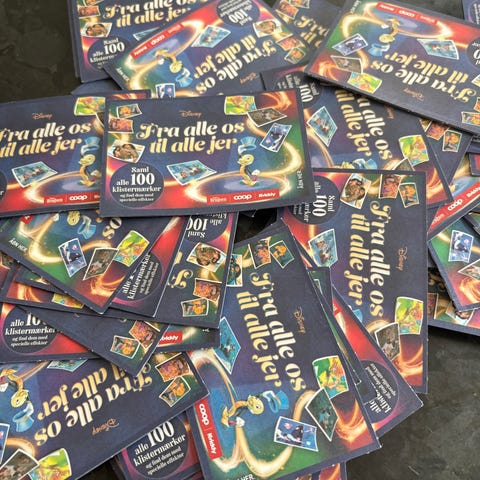Samlekort, 100 År Med Disney (UÅBNEDE), Distribueret i samarbejde med Super Brugsen, Kvickly, Coop, Dagli' Brugsen og Brugsen.
