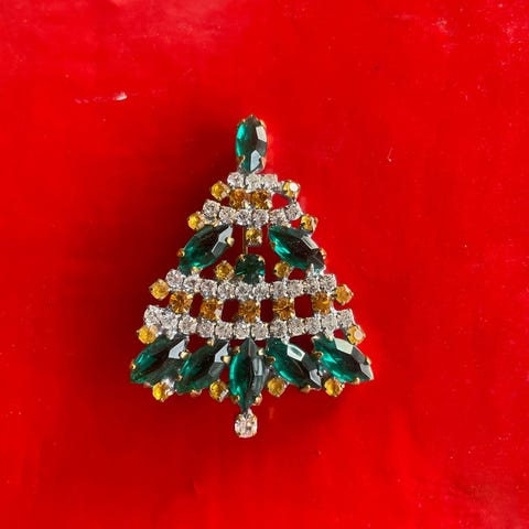 Rhinstens juletræ, Smukt lille rhinstens juletræ i grøn med forskellige farver sten. Måler 10 cm i højden.