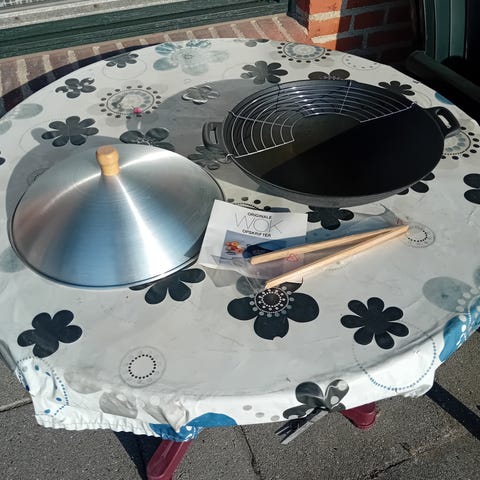 Wok gryde med låg og rist., Ukendt