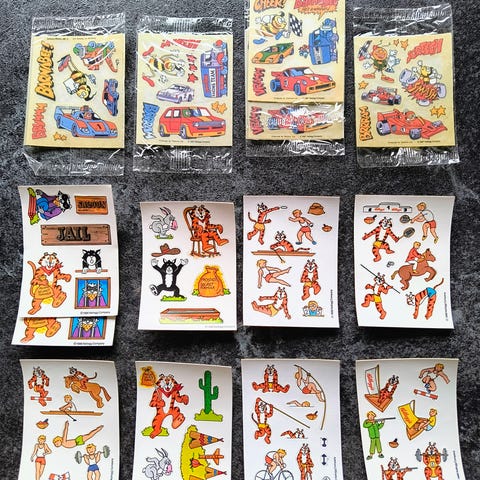 Ubrugt ark med 10 fodspor og figur fra Kelloggs produkt fra 1989.