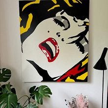 Akrylmaleri, Steffen Kindt, b: 120 h: 100, Flot originalt pop-art maleri af Steffen Kindt