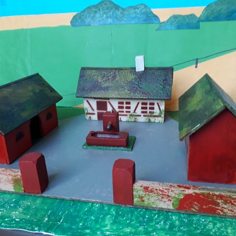 Miniature bondegård med figurer og hegn