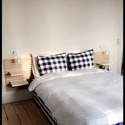 Skøn sengegavl i hvidolieret flet. Brugt sparsomt på et pigeværelse .