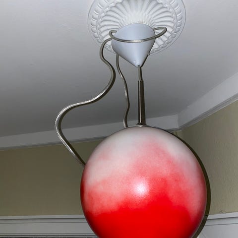 Kuglen måler Ø6 cm. Højden er 8 cm inkl. sokkel.