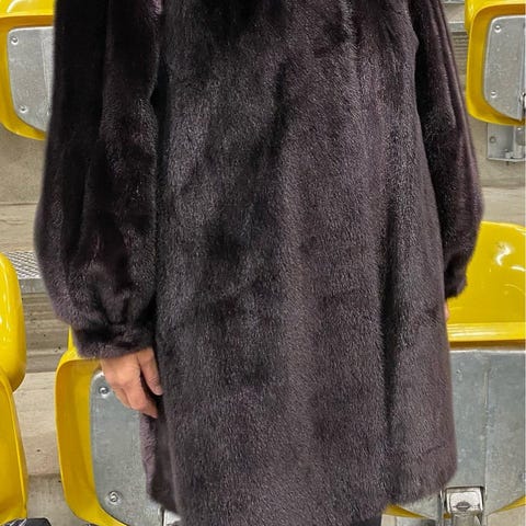 Pels, str. 40, Sælskind , Grå, sort og hvid, Sælskind , Næsten som ny, Smuk sælskind pels, i grå, sort og hvid. A-form. Str 40-42. Længde 92 cm fra nakken. Meget fin stand, som ny.