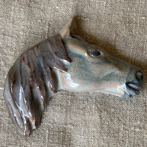 Keramik, Hyllested hest i stentøj. Vintage fra 1950 eller 60’erne. Brun