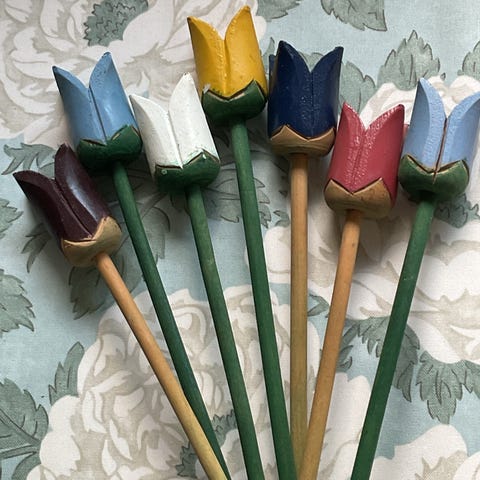Dekoration, Tulipaner i gul metal kan bruges som opslagstavle, til billeder køleskabsmagneter mm