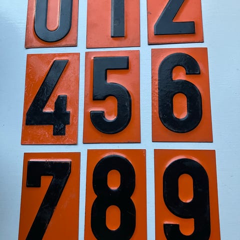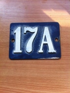 Skilte, metal / aluminium, blåt hus nr. skilt 13,50 cm lang - højden 10 cm - brugt skilt