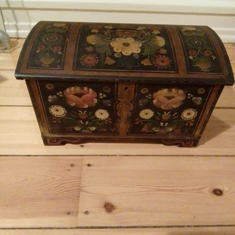 Skrin, Eg, 250 år gl., Dansk barok skrin - meget velholdt med original låseværk.L x b x h. 54 x 43 x 60