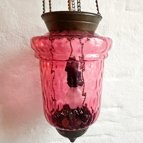Solskinslampe fra 1950`erne. Smukkeste vintage varmelampe med porcelænsfatning E27 og en skærm på 31 cm, ingen buler. Højde 61 cm. Giver et fantastisk lys med en stor glødepære - Fast pris - sender gerne