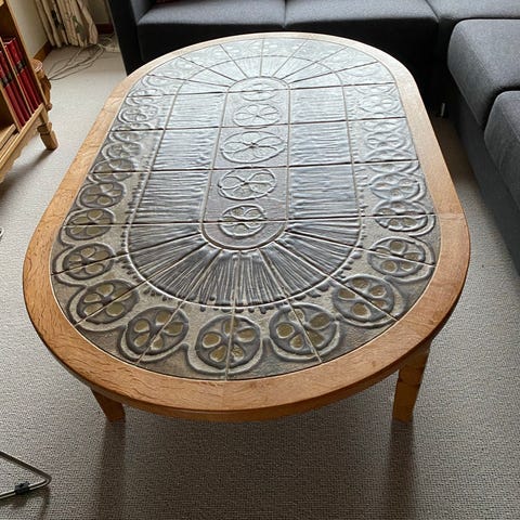 Sofabord, egetræ, Kakkelsofabord i egetræ. Mål: 135L, 75B, 55H. Pænt og velholdt. Afhentes i Regstrup.