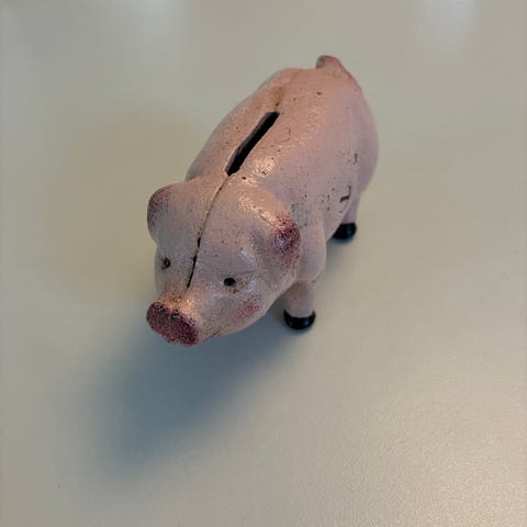Andre samleobjekter, Støbejernsgrise, med plads til lys indvendig. Mål: længde 30 cm, højde 16,5 cm, vægt 3,5 kg. Kan hænges op i ringen på ryggen. Pr styk 200 kr.