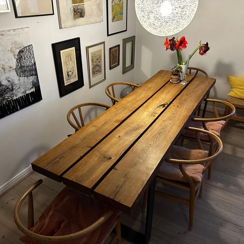 Spisebord, Ask træ med jernstel, Designet og fremstillet af A.P. Løvenwald
