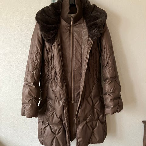 Vinterfrakke, str. 42, Betty Barclay, olivengrøn, Næsten som ny, Smart dun frakke fra Betty Barclay i casual quiltet design med hætte og detaljer. Frakken har aftagelig og justérbar hætte.