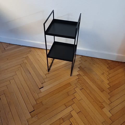 opbevaringsstativ hylde sort metal , er som ny