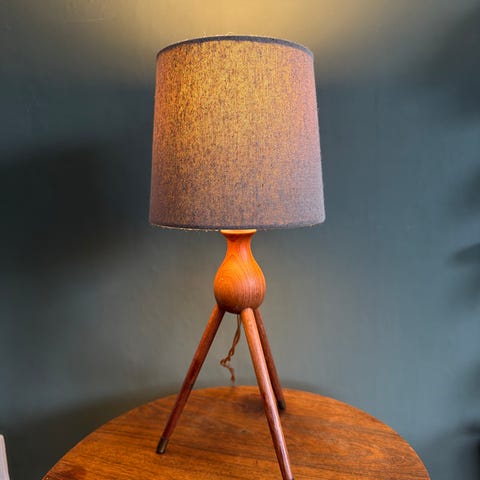 Lampe, Severin Hansen, Flot bordlampe i teaktræ med todelt skærm. Lampeplast bør skiftes. Ud over det er den i fin stand.