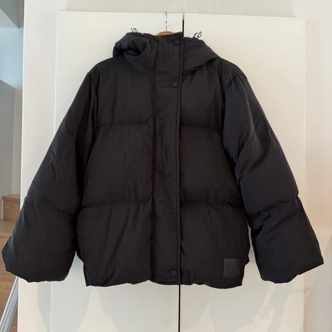Jakken kan maskinvaskes og tørres i tørretumbler - anvisning til dette er isyet på foret.