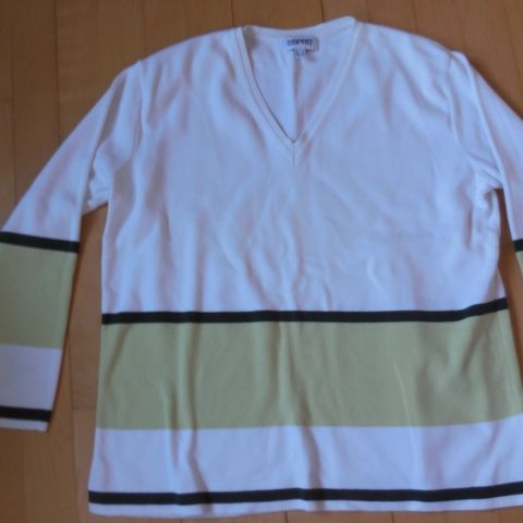 Bluse, Esprit, str. 38, Hvid, Polyester og elastan, Ubrugt, Flot lang hvid Esprit-trøje i str. medium. Ubrugt (prismærkat sidder stadig på). 97% polyester, 3% elastan. Lædersnorsbælte m. guldkant. Sender gerne (på købers regning) eller afhentes. Afleveres gerne på Hovedbanegården eller Amager ved 50% forudbetaling (+20 kr. ekstra). Betaling foretrækkes via MobilePay.