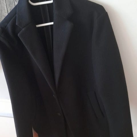 Frakke, str. L, Zara, Sort, God men brugt, Smuk medium længde sort dobbeltradet frakke