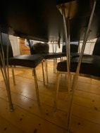 Spisebord, Laminat, Ukendt, b: 100 l: 180, Sort laminat bordplade, stålben.Mål: 180/100/72 cm. Medfølger: 1 tillægsplade, 50 cm. Max længde bliver derved 230 cm.