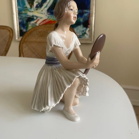 Kgl BALLETDANSER m/SPEJL, figur, Dahl Jensen, flot stand, nr 1224, 18 cm høj, 15 cm bred. Fast pris. SENDES for købers regning