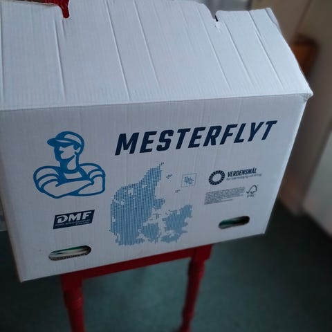 Køb en flyttekasse fyldt med pakkepapir og plastikbobler inklusiv kassen til kun 50 kr.