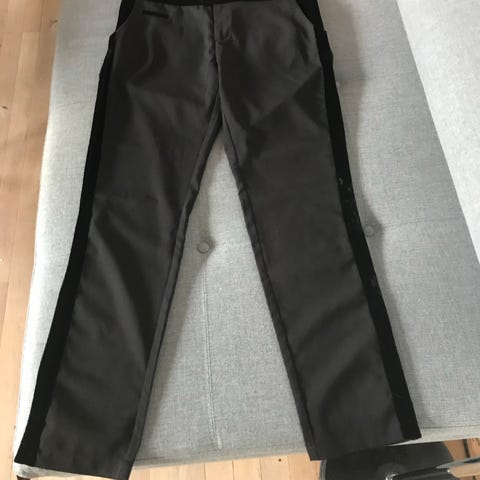 Karen by Simonsen ‘cigaret’ habitbukser, str. 40, i regulær pasform med cropped benlængde og smalle i benene. Bukserne har lommer og pressefold.