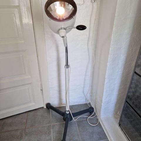 @ Hvid standerlampe på sort hjulstel fra gammel tandklinik i Sundern (Tyskland). Bygget i kraftige materialer og signalerer tysk kvalitet. Det er en lampe fra virksomheden Quarzlampen Gesellschaft Hanau "Original Hanau" som lå tæt på Frankfurt. Disse kliniklamper blev produceret i perioden 1930-1950. Den har lidt aldersrelateret brugsspor, hvilket kun er med til at give den et autentisk industielt look. Vil skabe en unik installation i en hvilken som helst stue eller studio og være et godt samtaleemne under en middag.
