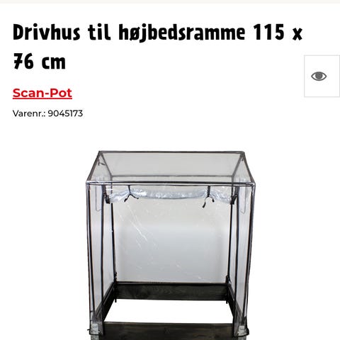 Drivhus, b: 70 l: 70 h: 35/50, Væksthus til højbed. Fremstillet i plastik og syet med sorte kantbånd. Stel fremstillet i antracitgrå metalrør. Overtrækket har to separate lynlåse – en til åbning af insektnettet og en til åbning af overtrækket. På denne måde kan der ventileres uden uønskede insekter får adgang til væksthuset. Minidrivhuset passer til palleramme 80 x 120 cm Dimension: H: 40/70 x B: 115 x D: 76 cm