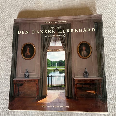 Her beskrives seks typiske danske herregårde: Frederiksdal og Ledreborg på Sjælland, Hofsmansgave og Glorup på Fyn og Clausholm og Schackenborg i Jylland. Steen Estvad Petersen beskriver bygninger, haver og landskaber, og beskrivelserne illustreres med flere hundrede farvebilleder, akvareller, topografiske kort og gamle stik.