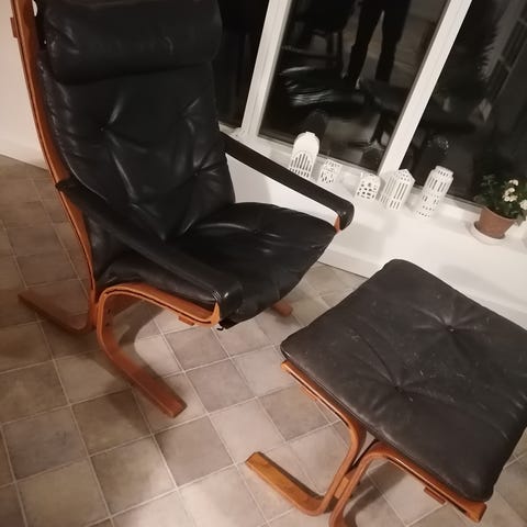 Jeg har 2 stk. den på billedet er i bedst stand. Den anden står pakket ind i kælderen og læderpuden på den er meget slidt.