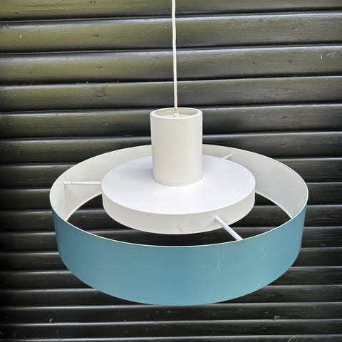 Pendel, Blågårds lamper, Sælger to blågårds lamper fra Fog & Mørup, designet i 1972 af Karen & Ebbe Clemmensen samt Jørgen Bo petroliumsgrøn.