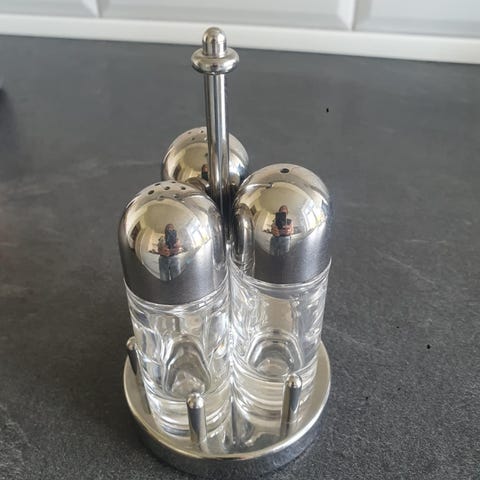 Olie/Eddike/Peber/Salt, Alessi, Olie/Eddike/Peber/Salt sæt fra Italienske Alessi.