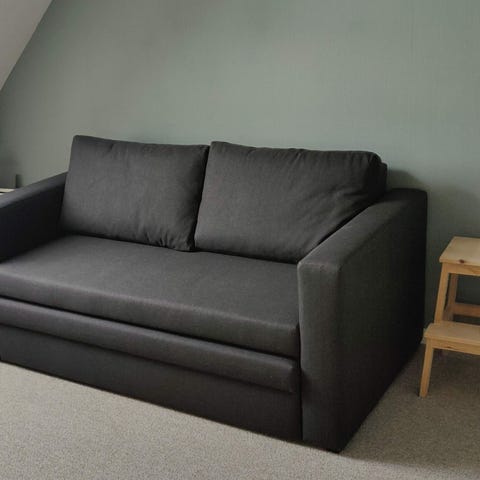 Sovesofa, Soft line, Sovesofa eller dybbed, som består af to madrasser. Se mål på specifikationerne på billede. Brugt, men fungere fint. Den runde pude på billedet medfølger ikke.