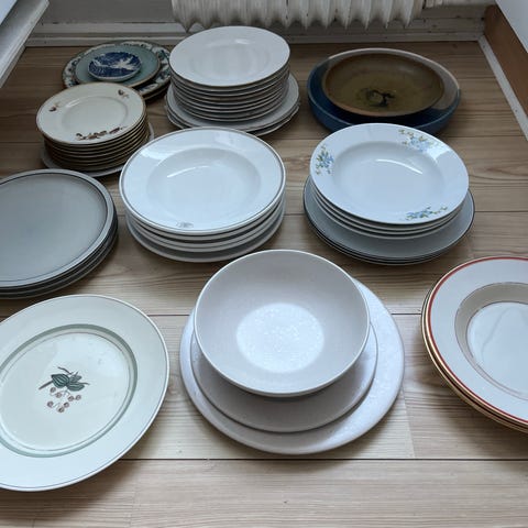 Porcelæn, Tallerkener, 12 styk ældre Dessert tallerkener i pæn stand.