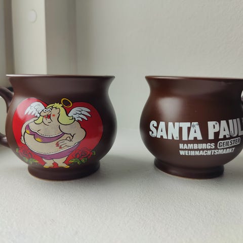 Det perfekte jule krus, når der skal nydes noget varmt at drikke i den kolde juletid er denne ældre souvenir som man fik serveret Glühwein i på et julemarked i Hamburg.