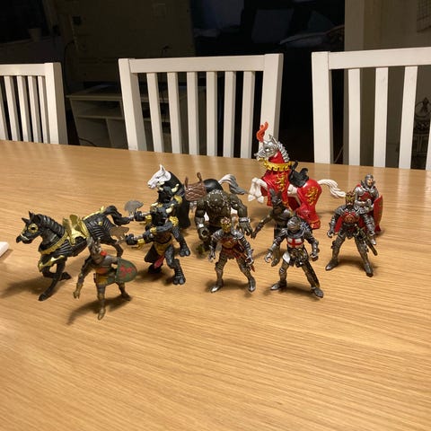 • Indret dit hjem med denne pragtfulde ridder Champion Knight til hest. Han er fuldt pansret og stormer mod sin modstander med sin lanse som mangler og trofaste hest. Han vil være en fantastisk gave til enhver middelalderridder, korsfarerriddere samler.