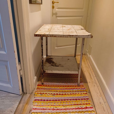 Det har fået den helt store omgang med nedslibning af hele stellet samt fjernelse af de gamle klinkemonteringslim samt klinker.