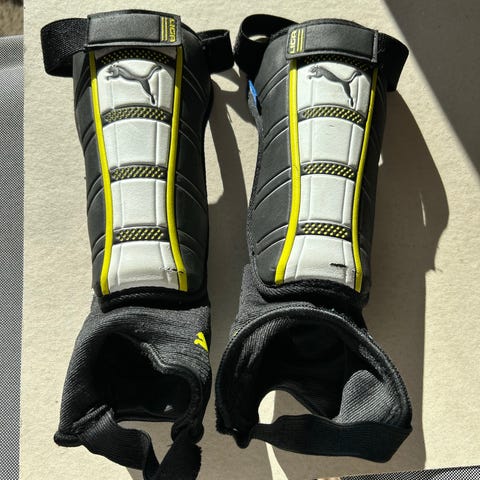 Benskinner, Benskinner fodbold, Puma, str. X.small, Geniale beskinner uden velcroluk. Man tager blot hylstret uden over. Jeg vil sige de passer fra størrelse 4-6 år.