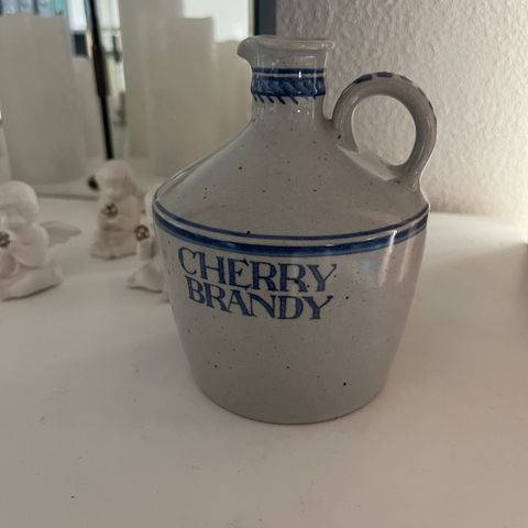 En gammel Cherry Heering karaffel / dram flaske i kraftig hvidt porcelæn og med flaskenæb i sølvfarvet metal og med kork prop. Dramflasken er præget med Heering samt logo på den ene side og med Royal Copenhagen logo samt 3 bølger på den anden side.