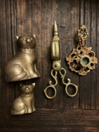 Messing katte kammer lysestage, 2 stk messing katte 10-6 cm