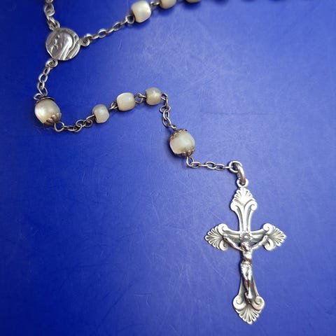 Rigtig flot vintage / antik fransk rosenkrans med perler af perlemor eller krystal.