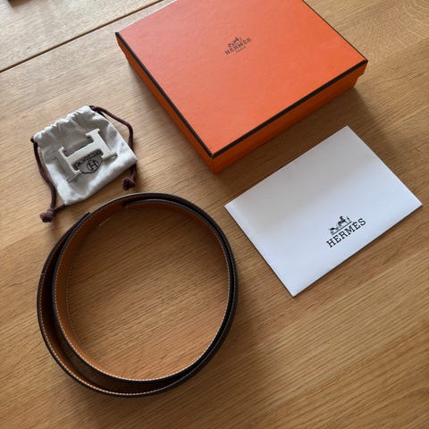 Tilbehør, Hermes, Hermes bælte uden spænde, sort/brun str 75 ægte. Kan bruges på begge sider. Det er uden spænde, det kan købes i alle Hermes butikker.